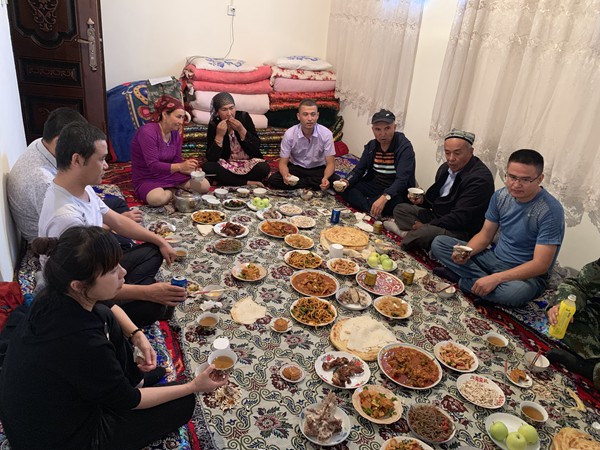 结亲周期间,结亲干部严格按照自治区党委统战部的统一安排,积极开展与结亲户交流交心活动,宣讲党的民族宗教政策,宣讲三本白皮书,积极融入到亲戚的劳动生活中。结亲干部与亲戚一起做晚饭,炒菜、炖肉、拉条子,大家满心欢喜吃起来,聊起了家常,聊起了今后的生活,我们就是一家人。