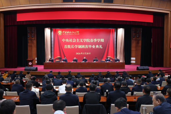 3月28日,中央社会主义学院举行2026年春季学期首批长学制培训班次毕业典礼。中央社院党组书记、第一副院长黄守宏出席并讲话,党组副书记、副院长姚植传主持。中央统战部有关局负责人和中央社院领导班子成员徐永全、徐绍刚出席。