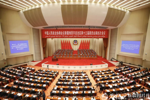 1月26日,中国人民政治协商会议新疆维吾尔自治区第十三届委员会第四次会议在新疆人民会堂开幕。 □石榴云/新疆日报记者谢龙摄