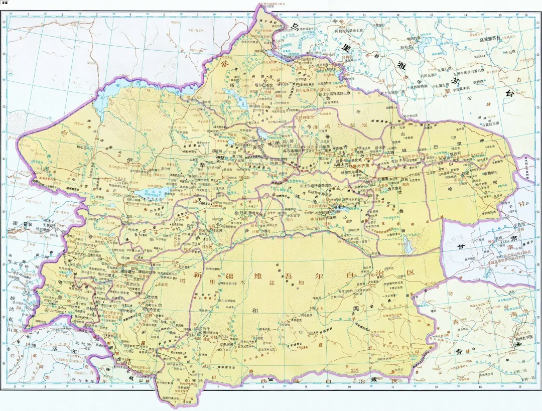 ▲清朝新疆地图。(图片来源:谭其骧《中国历史地图集》)