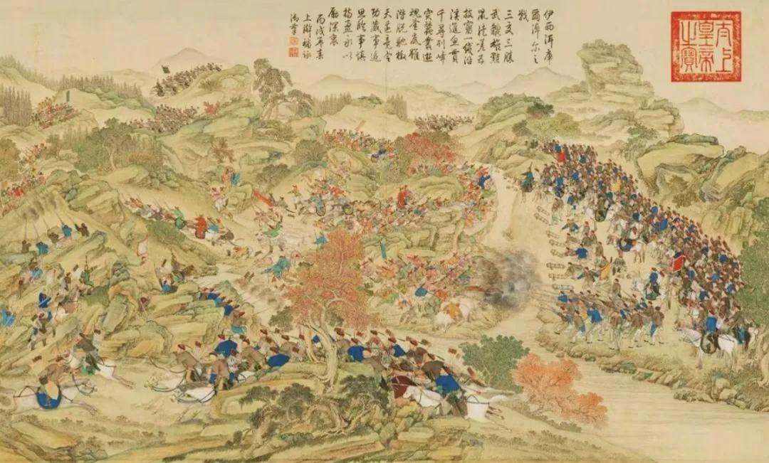 ▲《平定西域战图》之《伊西洱库尔淖尔之战》。(图片来源:故宫博物院)